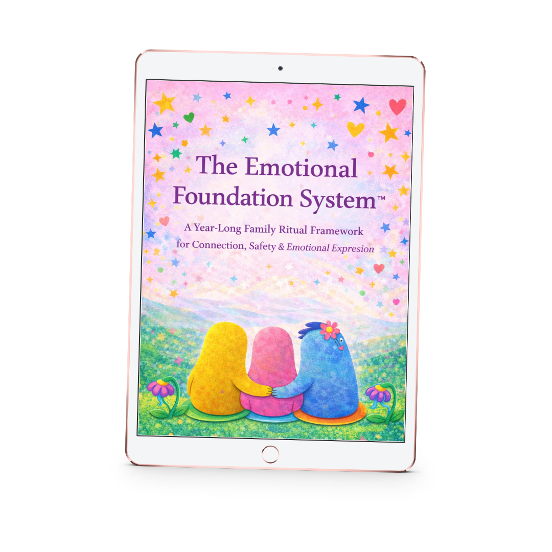 The Emotional Foundation System™ is a year-long family ritual framework that helps overwhelmed moms create emotional safety, calm, and connection at home without another parenting method to keep up with.